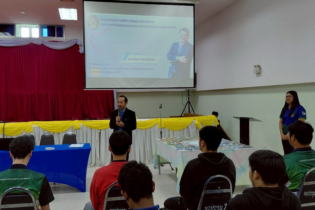 วันที่ 16 สิงหาคม 2568 คณะเทคโนโลยีอุตสาหกรรม จัดโครงการบริการการให้คำปรึกษาแก่นักศึกษาคณะเทคโนโลยีอุตสาหกรรม โดย ดร.วิทยา จันทร์เเดง รองปลัดเทศบาลตำบลท่าศาลา อ.เมือง จ.ลพบุรี เป็นวิทยากรบรรยายเเละอบรมเชิงปฏิบัติการ เรื่อง เปิดโลกการให้การปรึกษาวัยรุ่น, การสร้างสัมพันธภาพกับวัยรุ่น ทักษะเฉพาะกับวัยรุ่นที่มีพฤติกรรมเสี่ยง กิจกรรมเพื่อนช่วยเพื่อน/จับคู่ Buddy และการสื่อสารกับผู้ปกครอง เพื่อเป็นเเนวทางในการช่วยให้วัยรุ่นซึ่งเป็นช่วงวัยที่ต้องได้รับการดูแลเอาใจใส่เป็นพิเศษ ทั้งแนะนำองค์กรที่เป็นพื้นที่ปลอดภัยสำหรับวัยรุ่น เเละได้เรียนรู้ร่วมกับเพื่อนๆ ในรุ่นเดียวกัน สร้างเเรงบันดาลใจเเละการสนับสนุนซึ่งกันและกัน ณ ห้องประชุมชั้น 10 อาคาร 20 คณะเทคโนโลยีอุตสาหกรรม ตั้งเเต่เวลา 08.30-16.30 น.