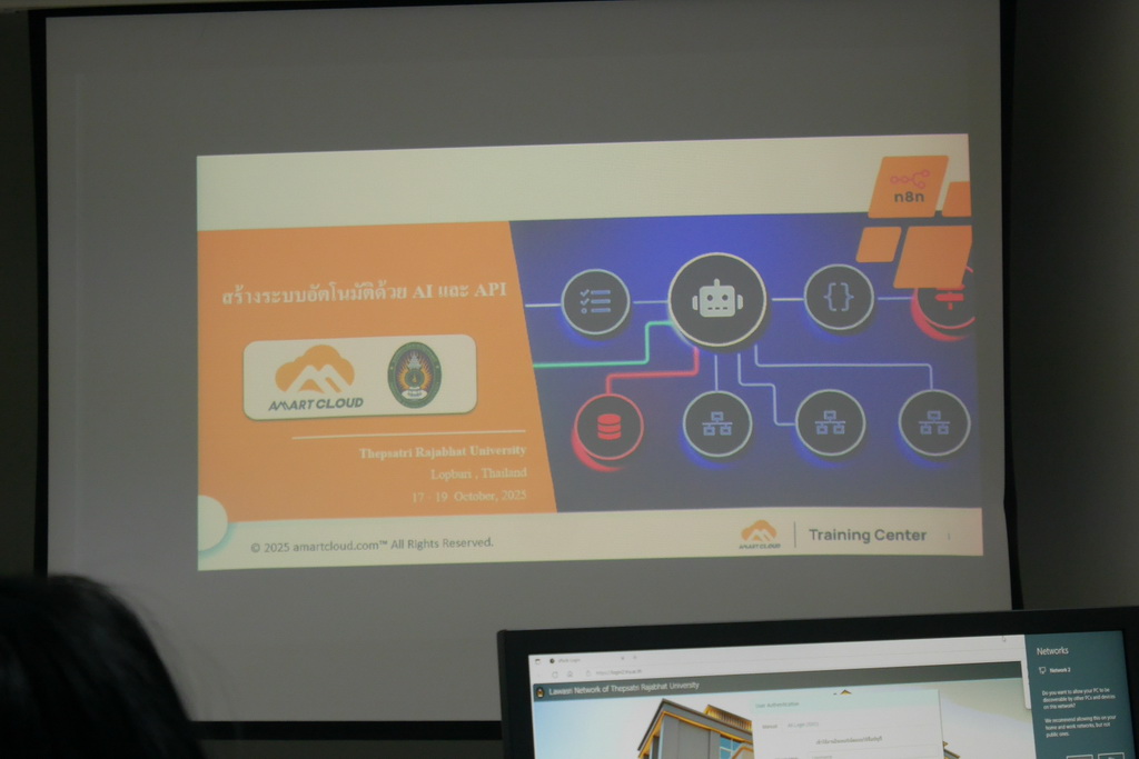 ระหว่างวันที่ 17-19 ตุลาคม 2568 สาขาวิชาวิศวกรรมการสื่อสารและสารสนเทศ คณะเทคโนโลยีอุตสาหกรรม จัดโครงการอบรมเชิงปฏิบัติการ n8n Workflow Automation ให้กับนักศึกษาสาขาวิชาวิศวกรรมสารสนเทศและการสื่อสาร และบุคคลภายนอกที่สนใจ โดยคุณมานะ แก้วเจริญ พร้อมทีมวิทยากรอบรม จากบริษัท อำมาตย์คลาวด์ จำกัด หัวข้อการอบรมมุ่งเน้นเพื่อให้มีความเข้าใจในหลักการของ Workflow Automation และสามารถใช้งานเครื่องมือ n8n ในการสร้างเวิร์กโฟลว์ได้อย่างเป็นระบบ เเละเพื่อประยุกต์ใช้ในการจัดการข้อมูล การมอนิเตอร์ระบบ และการสร้างต้นแบบของบริการด้านวิศวกรรมการสื่อสารฯ ณ ห้องปฏิบัติการคอมพิวเตอร์ ชั้น 5 อาคาร 20 คณะเทคโนโลยีอุตสาหกรรม ตั้งเเต่เวลา 09.00 – 16.00 น.