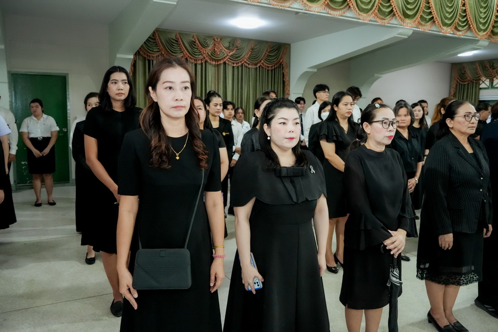 วันที่ 31 ตุลาคม พ.ศ. 2568 คณะผู้บริหาร อาจารย์ เจ้าหน้าที่เเละนักศึกษา คณะเทคโนโลยีอุตสาหกรรม ร่วมพิธีถวายความอาลัยแด่ สมเด็จพระนางเจ้าสิริกิติ์ พระบรมราชินีนาถ พระบรมราชชนนีพันปีหลวง เบื้องหน้าพระฉายาลักษณ์ โดย ผศ.ดร.กันยา บาร์นท์ อธิการบดีมหาวิทยาลัยราชภัฏเทพสตรีได้ถวายมาลัย และกล่าวถวายความอาลัยเบื้องหน้าพระฉายาลักษณ์ สมเด็จพระนางเจ้าสิริกิติ์ พระบรมราชินีนาถ พระบรมราชชนนีพันปีหลวง พร้อมยืนสงบนิ่งเป็นเวลา 93 วินาที เพื่อถวายความอาลัยและน้อมรำลึกในพระมหากรุณาธิคุณอันหาที่สุดมิได้ และร่วมลงนามถวายความอาลัย ณ หอประชุม ตั้งเเต่เวลา 08.30-09.00 น.