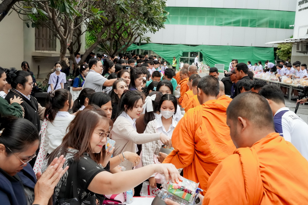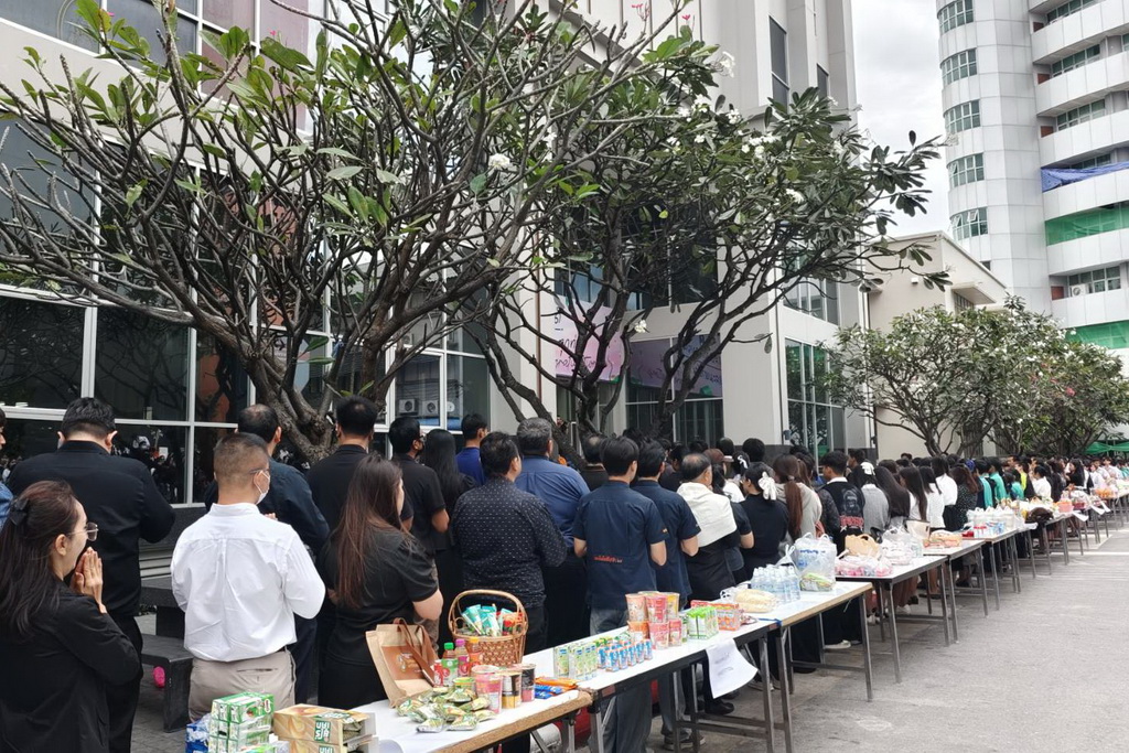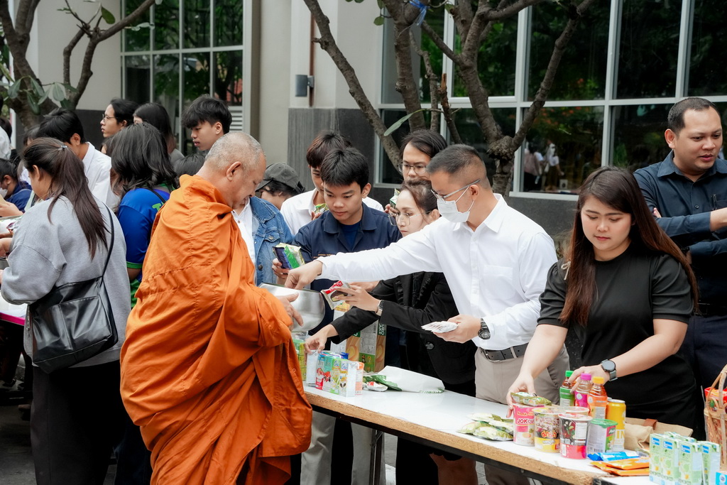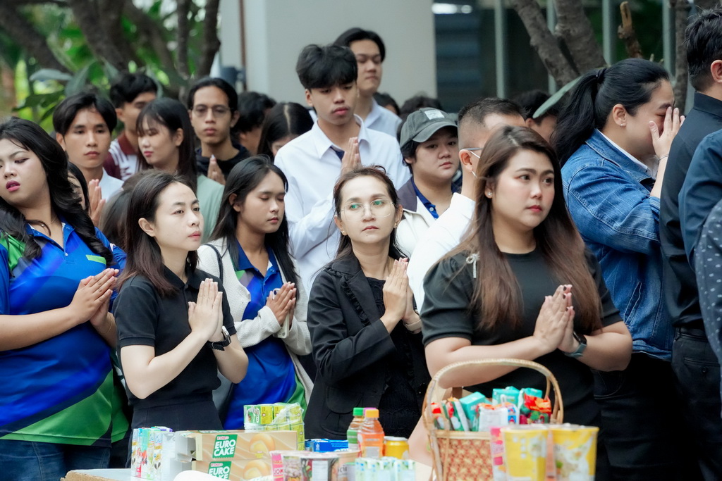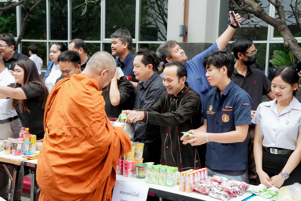 วันที่ 19 พฤศจิกายน 2568 คณะผู้บริหาร อาจารย์ เจ้าหน้าที่ และนักศึกษา คณะเทคโนโลยีอุตสาหกรรม ร่วมพิธีทำบุญตักบาตรข้าวสารอาหารแห้ง พระสงฆ์ จำนวน 9 รูป เพื่ออุทิศถวายเป็นพระราชกุศลแด่ สมเด็จพระนางเจ้าสิริกิติ์ พระบรมราชินีนาถ พระบรมราชชนนีพันปีหลวง โดยได้ยืนสงบนิ่งเป็นเวลา 93 วินาที เพื่อน้อมถวายความอาลัยและน้อมรำลึกในพระมหากรุณาธิคุณอันหาที่สุดมิได้ ทั้งนี้ ข้าวสารอาหารเเห้งที่ร่วมกันตักบาตรจะนำไปมอบให้แก่พี่น้องประชาชนที่ได้รับผลกระทบจากสถานการณ์น้ำท่วมต่อไป ณ บริเวณแนวถนนด้านข้างอาคารรัตนเทพสตรี มหาวิทยาลัยราชภัฏเทพสตรี ตั้งเเต่เวลา 08.00-08.30 น.