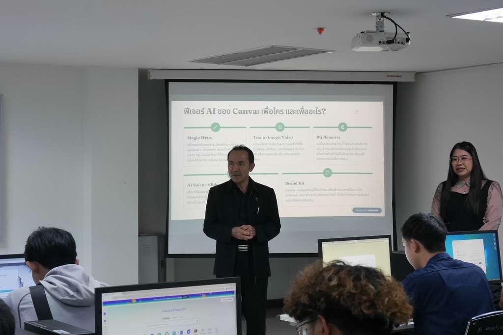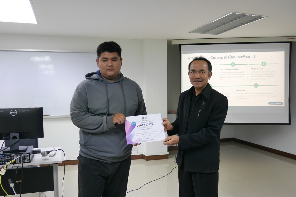 วันที่ 26 ธันวาคม 2568 คณะเทคโนโลยีอุตสาหกรรม จัดโครงการอบรมเชิงปฏิบัติการพัฒนาทักษะความรู้ด้านเทคโนโลยีดิจิทัล เรื่อง Canva for All - สร้างสรรค์งานออกแบบได้ทุกคน รุ่นที่ 2 โดย รศ.ว่าที่ร้อยตรี ดร.ชูชาติ พยอม คณบดีคณะเทคโนโลยีอุตสาหกรรม เป็นประธานเปิดโครงการ วัตถุประสงค์เพื่อส่งเสริมความรู้และพัฒนาศักยภาพของนักศึกษาคณะเทคโนโลยีอุตสาหกรรมในด้านเทคโนโลยีดิจิทัล เเละสามารถนำความรู้ ทักษะ ประยุกต์ใช้ในการเรียน การทำงาน และการดำเนินชีวิตจริง โดยได้ ผศ.ดร.ปิยะพงษ์ เเดงขำ เป็นวิทยากรบรรยาย การใช้โปรแกรม Canva All - ออกแบบงานสร้างสรรค์ ณ ห้องปฏิบัติการคอมพิวเตอร์ชั้น 5 อาคาร 20 ตั้งเเต่เวลา 13.00-16.00 น.