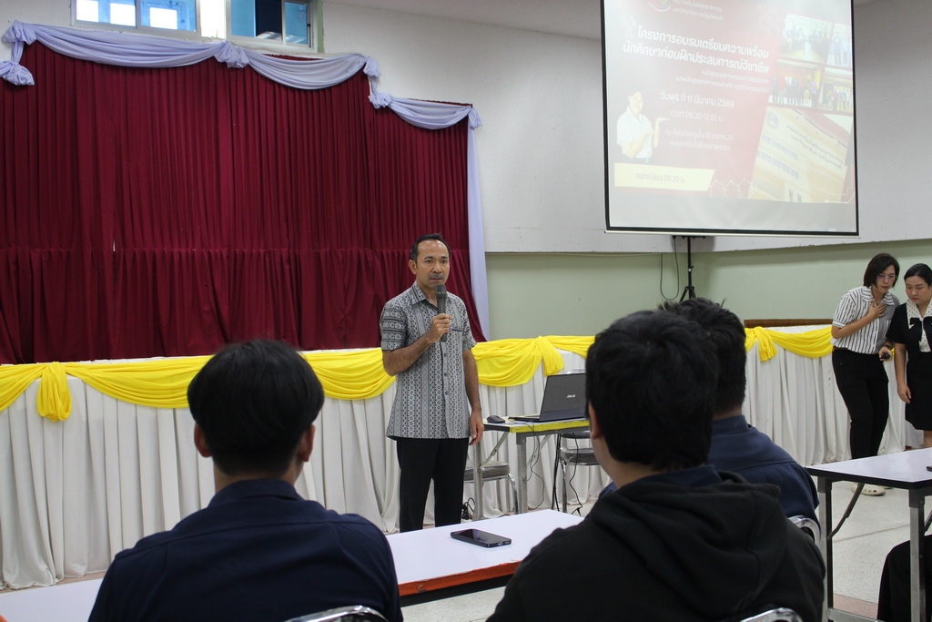 วันที่ 11 มีนาคม 2569 คณะเทคโนโลยีอุตสาหกรรม จัดปฐมนิเทศนักศึกษาก่อนฝึกประสบการณ์วิชาชีพ ประจำภาคฤดูร้อน ปีการศึกษา 2568 โดย รศ.ว่าที่ร้อยตรี ดร.ชูชาติ พยอม คณบดีคณะเทคโนโลยีอุตสาหกรรม เป็นประธานกล่าวเปิด พร้อมทั้งรองคณบดีทั้ง 3 ฝ่าย เเละอาจารย์ที่ปรึกษาเเต่ละหมู่เรียนเข้าร่วมปฐมนิเทศ เพื่อชี้แจงจุดมุ่งหมาย ข้อปฏิบัติ และแลกเปลี่ยนประสบการณ์ของคณาอาจารย์ในการฝึกประสบการณ์วิชาชีพ ซึ่งมีนักศึกษาหลักสูตรอุตสาหกรรมศาสตรบัณฑิต และหลักสูตรครุศาสตรบัณฑิต (อุตสาหกรรมศิลป์ เข้าร่วมในครั้งนี้ ณ ห้องประชุมชั้น 10 อาคาร 20 ตั้งเเต่เวลา 08.30-12.00 น.