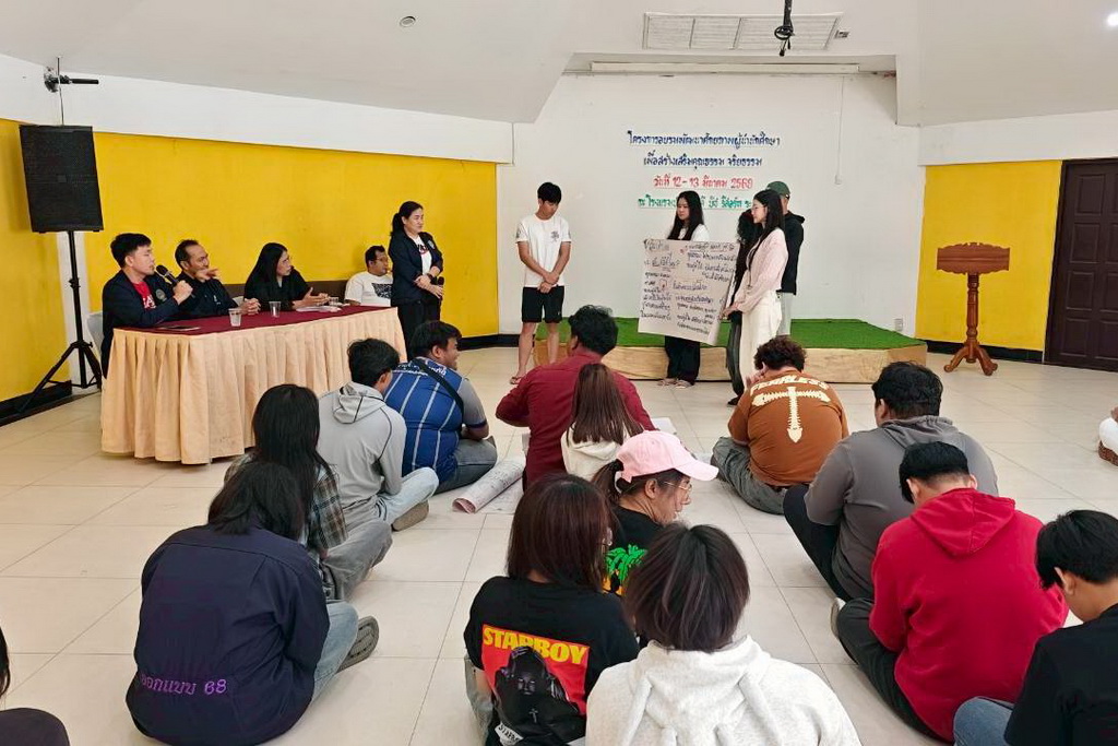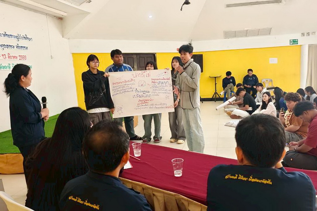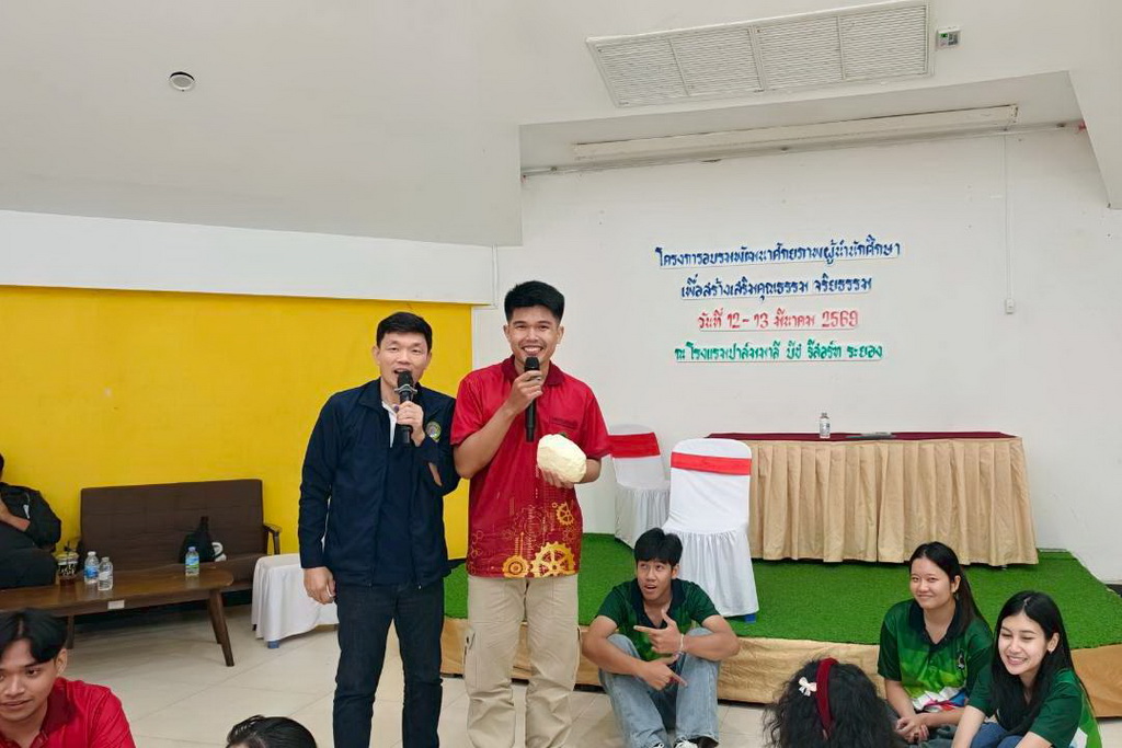 ระหว่างวันที่ 12-13 มีนาคม 2569 คณะเทคโนโลยีอุตสาหกรรม จัดโครงการอบรมพัฒนาศักยภาพผู้นำนักศึกษาเพื่อสร้างเสริมคุณธรรม จริยธรรม มีวัตถุประสงค์เพื่อสร้างเสริมคุณธรรมจริยธรรม ปลูกผังจิตสำนึกความรับผิดชอบ สร้างทัศนคติเชิงบวก และเสริมสร้างทักษะการตัดสินใจบนพื้นฐานของความถูกต้อง โดย รศ.ว่าที่ร้อยตรี ดร.ชูชาติ พยอม คณบดีคณะเทคโนโลยีอุตสาหกรรม เป็นประธานกล่าวเปิดโครงการ ซึ่งได้ดำเนินการจัดกิจกรรมดังนี้ กิจกรรมละลายพฤติกรรม เพื่อสร้างความเป็นอันหนึ่งอันเดียวกัน, กิจกรรมหลักการคิด การสื่อสารในการเป็นผู้นำนักศึกษาด้วยกระบวนการเรียนรู้ควบคู่การลงมือทำ, กิจกรรมความสามัคคีและการทำงานเป็นทีม, กิจกรรมการแก้ไขปัญหาร่วมกันและการนำไปประยุกต์ใช้ในการทำงาน, กิจกรรมเสริมสร้างความไว้วางใจ การสื่อสารที่ดี และทักษะการฟัง, กิจกรรมสงบศึก การฝึกสมาธิ หรือการใช้ศิลปะบำบัด เพื่อฝึกการควบคุมอารมณ์และสติในการแก้ไขปัญหา, กิจกรรมถอดบทเรียนกลุ่มสัมพันธ์สร้างสรรค์, กิจกรรม “Action Plan for Change” สัญญาใจผู้นำ เเละกิจกรรม “Pitching” นำเสนอแผนสร้างสรรค์สังคม ณ โรงแรมปาล์มมาลีบีช รีสอร์ท จังหวัดระยอง