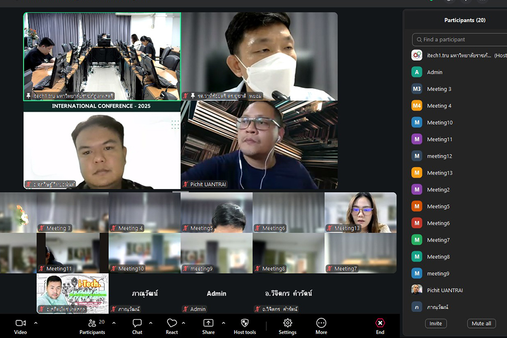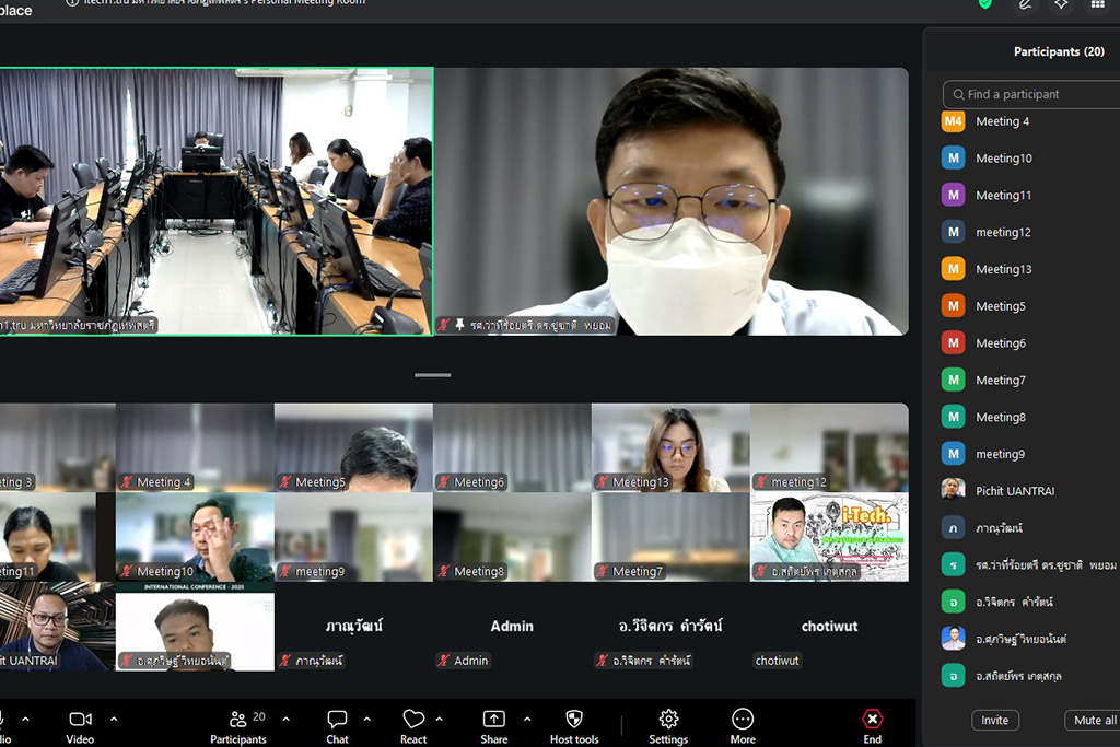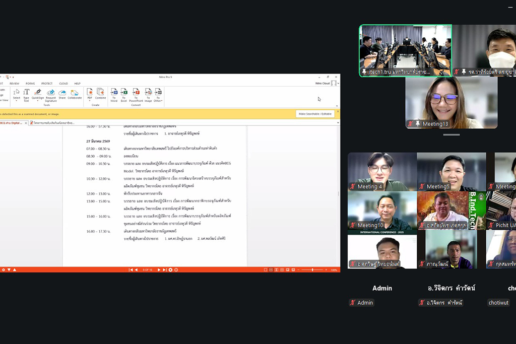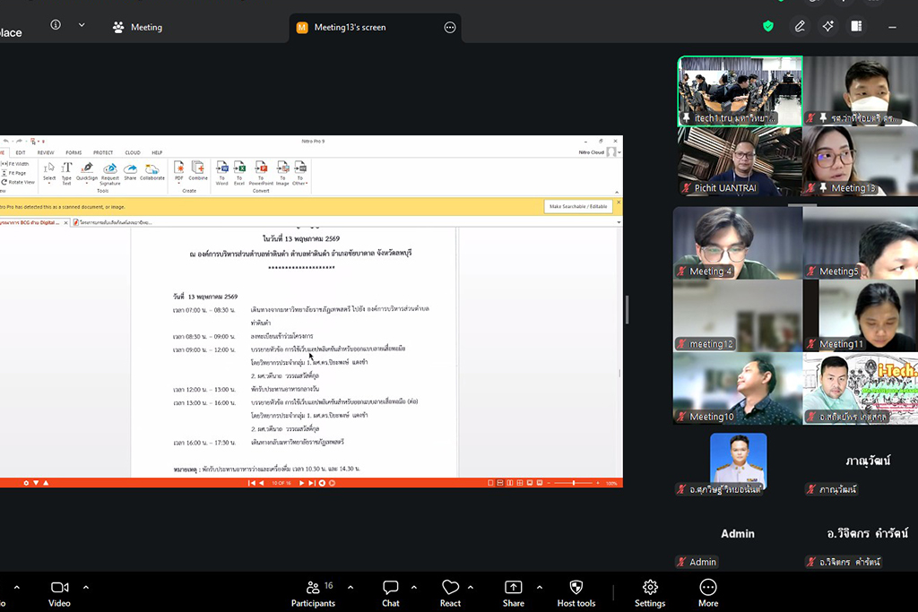วันที่ 17 มีนาคม 2569 ผศ.ดร.สิริสวัสดิ์ จึงเจริญนิรชร รองคณบดีฝ่ายบริหาร พร้อมด้วย อาจารย์ และเจ้าหน้าที่ผู้เกี่ยวข้อง คณะเทคโนโลยีอุตสาหกรรม ประชุมการติดตามผลการปฏิบัติงานองค์การบริหารส่วนตำบลท่าดินดำ จังหวัดลพบุรี เพื่อจัดทำสื่อประชาสัมพันธ์ โครงการ 1 ราชภัฏ 1 ตำบล ต้นแบบ โดยจะต้องนำผลงานนี้เผยแพร่ในงานมหกรรม 106 ปี ประชุมผ่านสื่ออิเล็กทรอนิกส์ ระบบ Zoom Cloud Meeting ณ ห้องประชุมชั้น 2 อาคาร 20 คณะเทคโนโลยีอุตสาหกรรม ตั้งแต่เวลา 13.30-15.00 น.